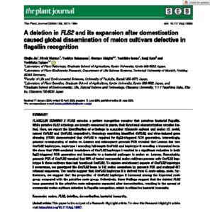 Jin C, Matsuo H, Nakayama Y, Shigita G, Inoue Y, Kato K, Takano Y. A deletion in FLS2 and its expansion after domestication caused global dissemination of melon cultivars defective in flagellin recognition. (2024) Plant J, 119(4):1671-1684